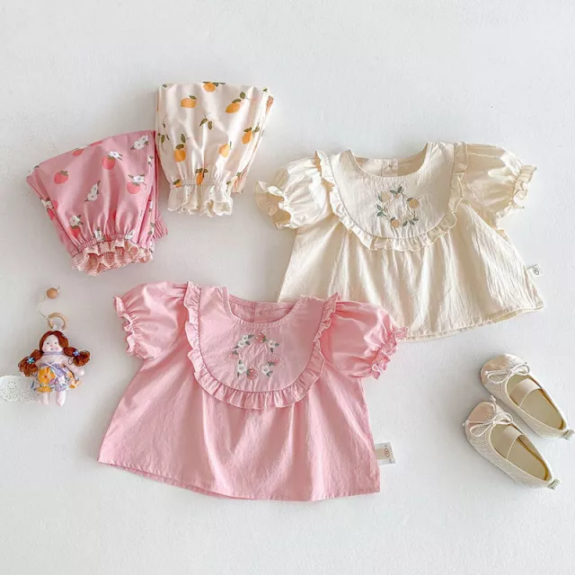 Dress your baby girl in the sweetest summer outfit that blends comfort, charm, and playfulness in one irresistible set. This cute and stylish ensemble features a ruffled floral-embroidered top paired with fruit-printed pants that make every day feel like sunshine and fun. Whether it’s a family picnic, a playdate in the park, or a casual day out, this outfit adds a cheerful and fashionable flair to her summer wardrobe.