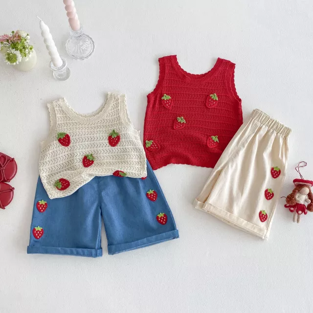 This outfit isn’t just cute — it’s also practical. The sleeveless vest ensures your child stays cool, while the relaxed wide-leg pants give her room to move without restriction. The playful strawberry design adds a touch of sweetness that makes it stand out from everyday kids’ clothes. It’s the perfect combo of fashion and function, and an absolute must-have in your little girl’s summer wardrobe.