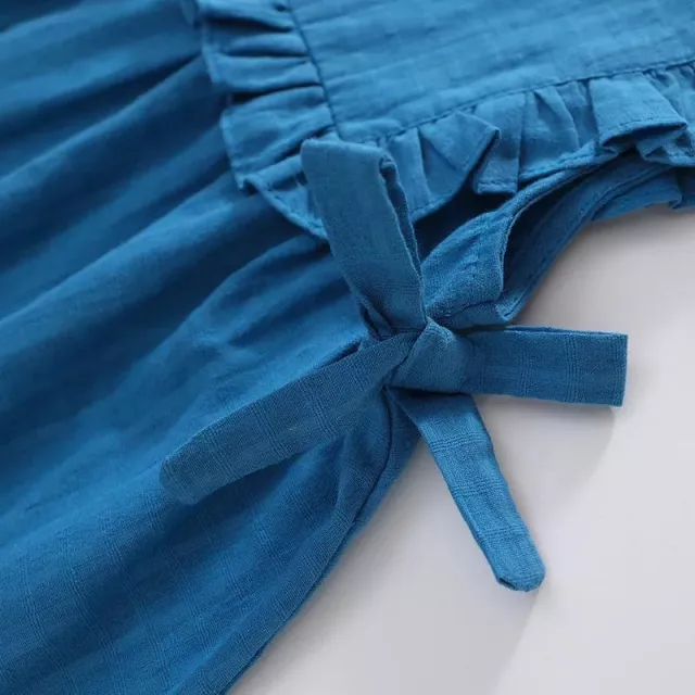 This dress is thoughtfully designed with both fashion and comfort in mind. The delicate ruffled collar and shoulder details add a sweet, girly touch, while the practical button-back design ensures hassle-free dressing. Crafted from high-quality cotton fabric, it’s gentle on sensitive skin and breathable enough for even the hottest summer days.