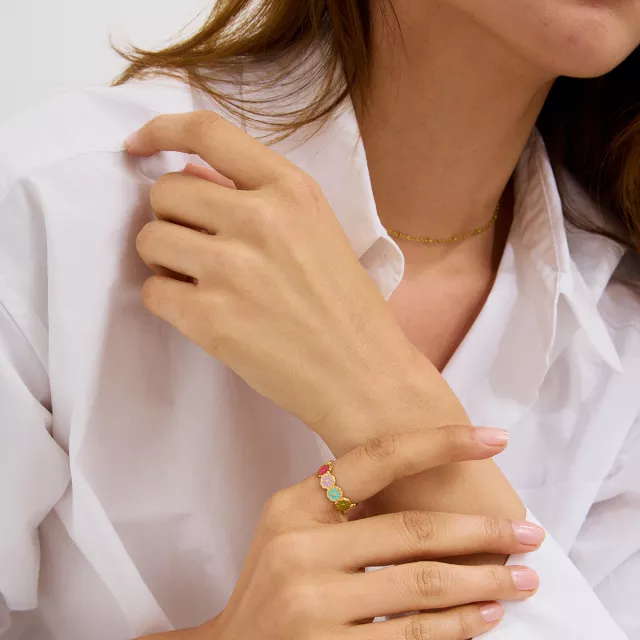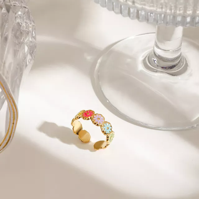 Let your hands bloom with joy and color this season with the Sweet Daisy Flower Ring – a playful and romantic piece designed to brighten your everyday look. Plated in shimmering 18K gold over durable stainless steel, this dainty ring features an adorable daisy pattern in cheerful pastel colors that capture the essence of summer. Whether you’re dressing up for a garden party or adding a hint of charm to your casual outfit, this ring is your go-to accessory for effortless style and sunny vibes.