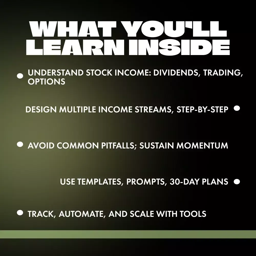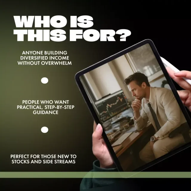 Ambitious beginners ready to build multiple income streams without feeling scattered. Side-hustlers and professionals who want practical, step-by-step guidance they can fit around a busy schedule. Creators and investors seeking a balanced approach that blends stocks, digital income, and simple systems.