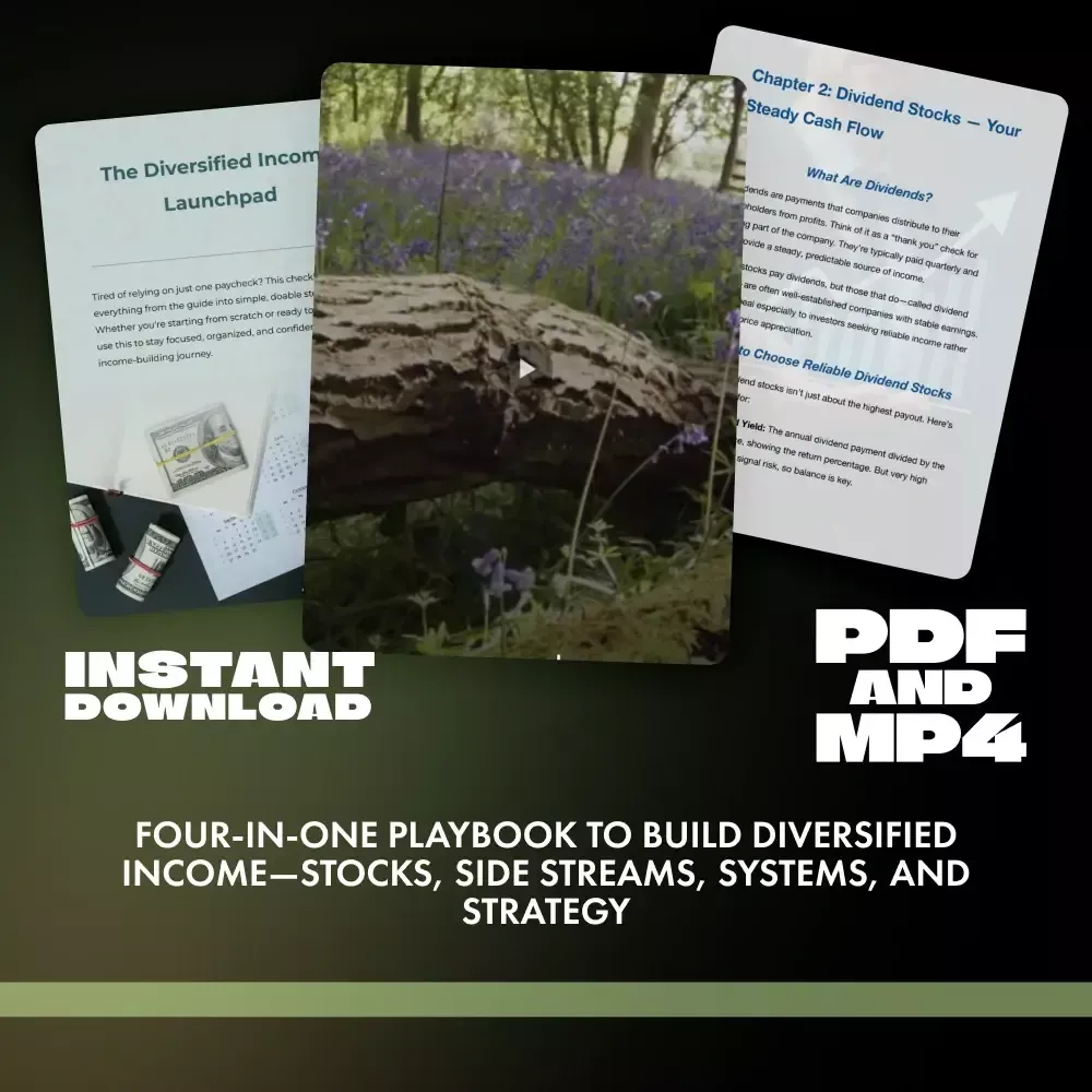 Ready to multiply your income the smart way? Download The Income Multiplier Bundle now, start with the wealth waves from stocks guide, choose a path from the multiple income guide, launch with The Diversified Income Launchpad, and keep momentum using the Wealth 8-Video Course Outline. Build, stack, and scale—one focused win at a time. This is a digital product; no physical item will be shipped.