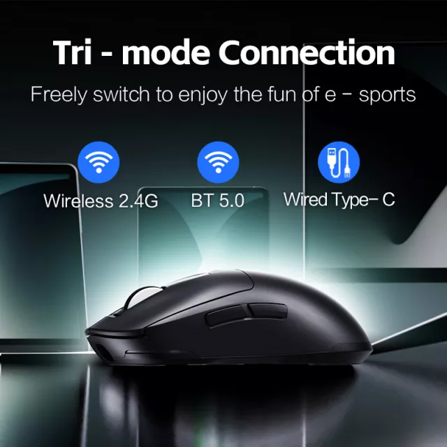 Thanks to its triple-mode connectivity—Wired, 2.4G Wireless, and Bluetooth 5.0—you can switch between devices instantly and enjoy unmatched flexibility across PCs, laptops, and tablets. The ultra-low latency of just 0.001 seconds ensures that your reaction time is as sharp as your aim.