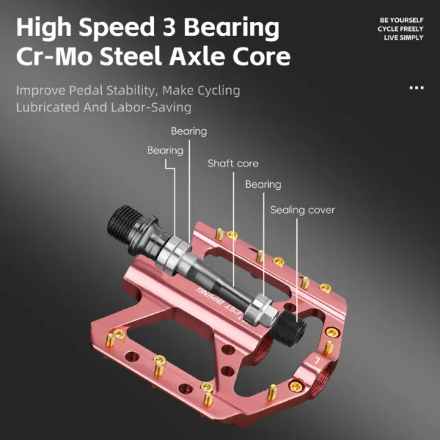 Designed with a smooth 3-bearing system, these pedals reduce friction and boost pedaling efficiency, helping you ride longer with less fatigue. The advanced aluminum alloy body is not only incredibly strong but also impressively lightweight — just under 9.5 oz — making them ideal for BMX, mountain, and road bikes alike.