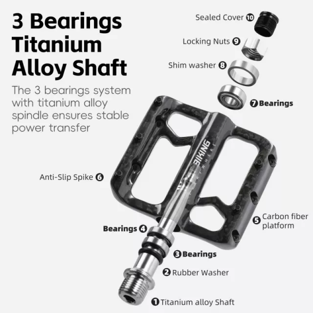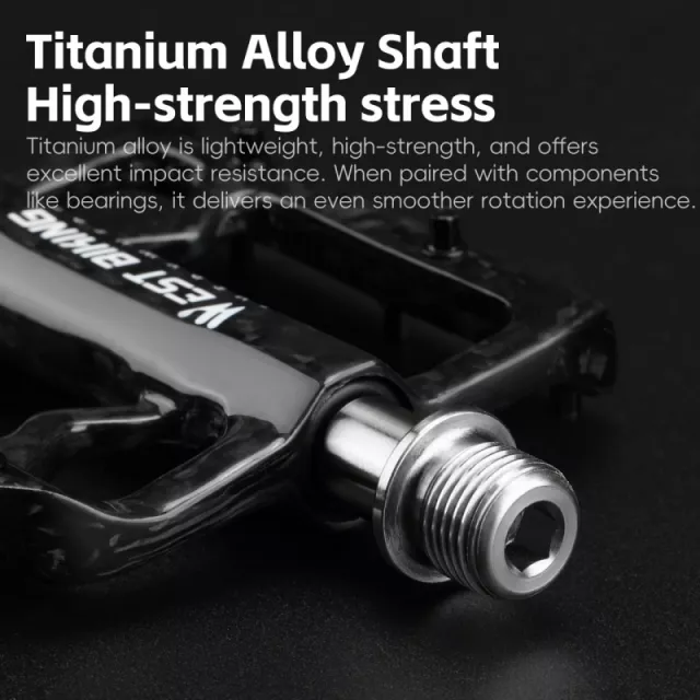 Crafted from premium T800 carbon fiber and featuring a titanium alloy shaft, these pedals offer the perfect balance of strength and feather-light performance. At just 3.2 oz per pedal, they reduce unnecessary weight without compromising durability, giving you more speed and less fatigue on long rides.