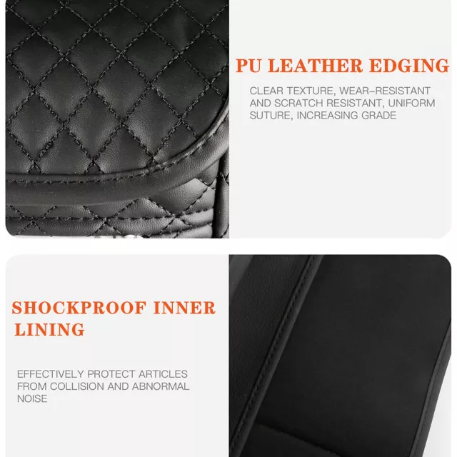 This car organizer is not just stylish but incredibly functional. It features multiple compartments for your handbag, phone, tissues, water bottles, and more. The universal design makes it easy to install without tools, fitting most cars with a center armrest. Its sturdy construction ensures that your items stay secure, even during sudden stops or turns.