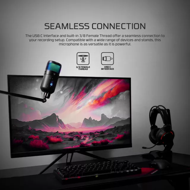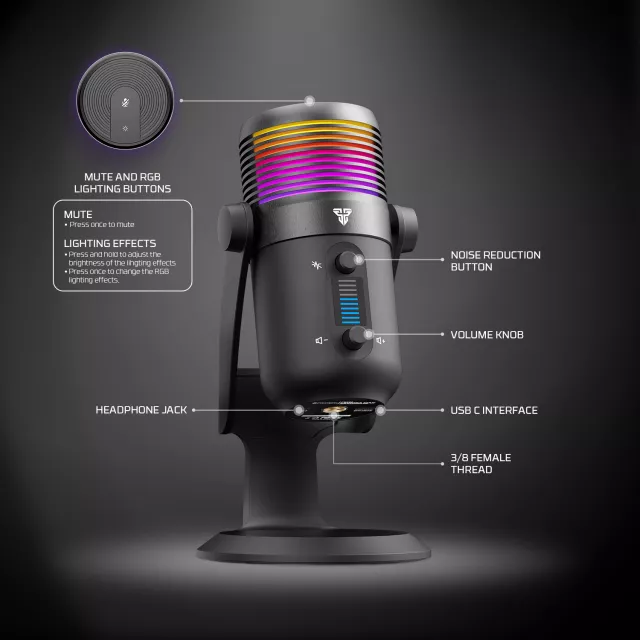 Take your voice to the next level with this high-performance USB condenser gaming microphone, designed for creators who demand clarity, power, and control. Whether you’re streaming, podcasting, gaming, or recording music, this mic captures every detail with professional precision. Featuring a large 16 mm condenser capsule, real-time monitoring, RGB lighting, and one-touch mute, it’s packed with tools that elevate your content and keep your setup sleek and functional.