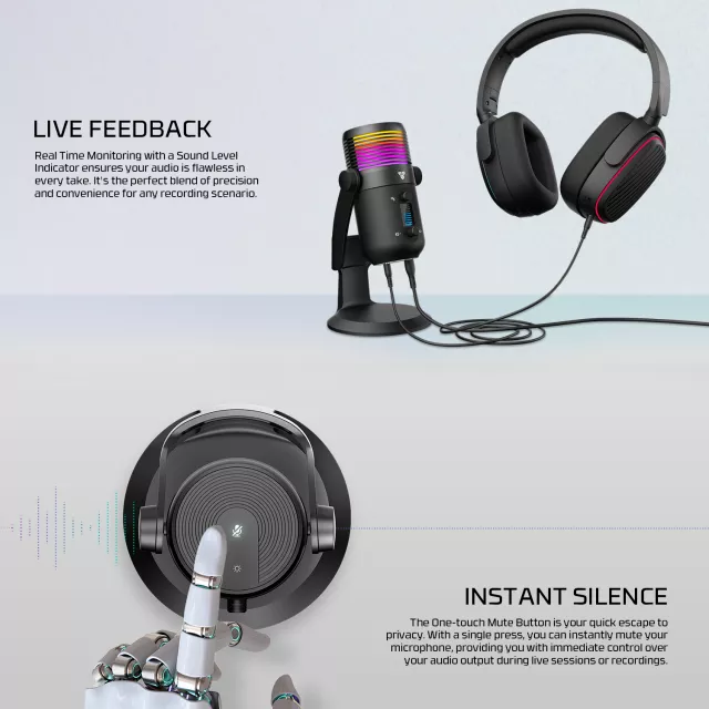 This microphone combines smart engineering and user-friendly design for a seamless audio experience. With a high sampling rate of 192 kHz / 24-bit, it delivers crisp, lifelike recordings across the full sound spectrum. The cardioid pickup pattern focuses on your voice while reducing background noise—perfect for noisy environments or shared spaces. It also includes advanced noise reduction technology, keeping your audio free from distractions. Want instant privacy? The one-touch mute button gives you full control in one press. And with real-time audio monitoring through a built-in headphone jack, you can fine-tune your sound on the fly.