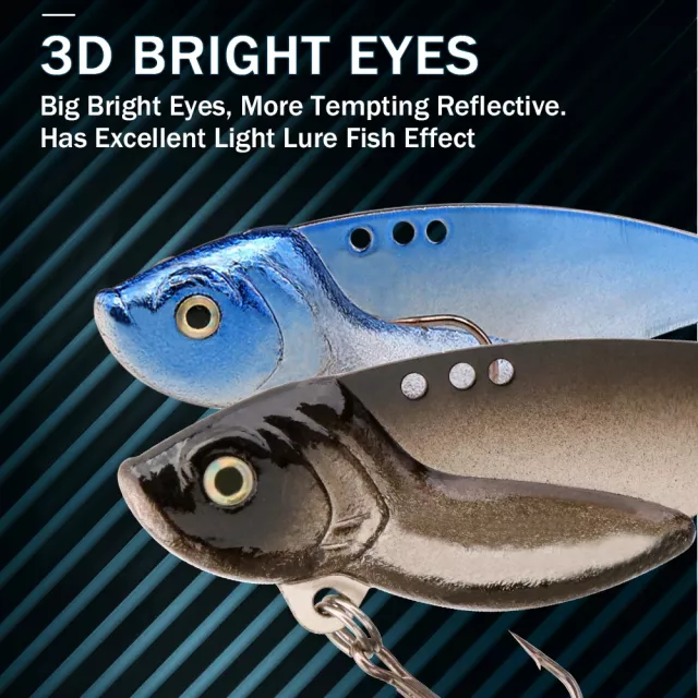 Its lifelike 3D eyes and finely detailed body are designed to trigger strikes from even the wariest fish. Built with a lead sinker in the head and a solid ABS plastic body, this lure is both environmentally conscious and highly durable. The aerodynamic design ensures long, accurate casts, while its vibrating motion on retrieve creates an attention-grabbing action that fish can’t resist.