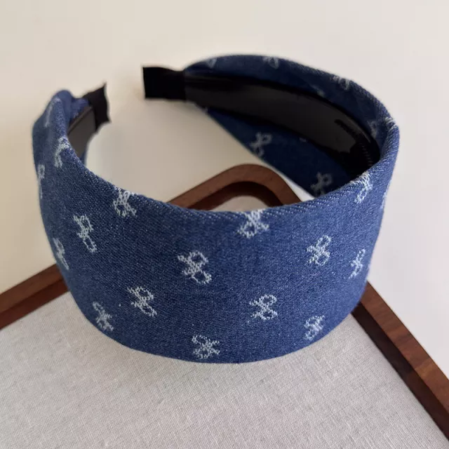 Bring a touch of timeless charm to your look with this denim blue bow headband. Designed with a wide edge and playful printed bow, this versatile hair accessory is the perfect mix of retro style and modern flair. Whether you’re dressing up for a casual day out, adding personality to your everyday outfit, or finishing off a cute date look, this headband instantly elevates your style. Its soft fabric construction ensures all-day comfort, while the stylish bow detail creates a sweet yet fashionable touch.