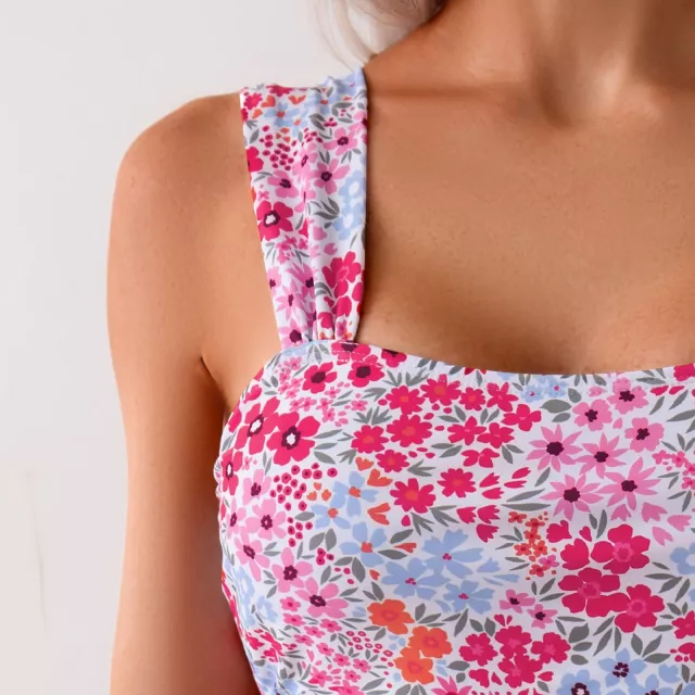 Turn heads this summer with a swimsuit that blends vintage charm and modern comfort. This Floral Ladies Vintage Two-Piece Swimsuit is designed for the woman who wants to feel confident, stylish, and supported – whether lounging poolside or diving into ocean waves. The flattering high-waisted ruched bottoms shape and smooth your silhouette, while the sporty crop tank top offers the perfect balance of coverage and sex appeal.