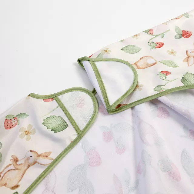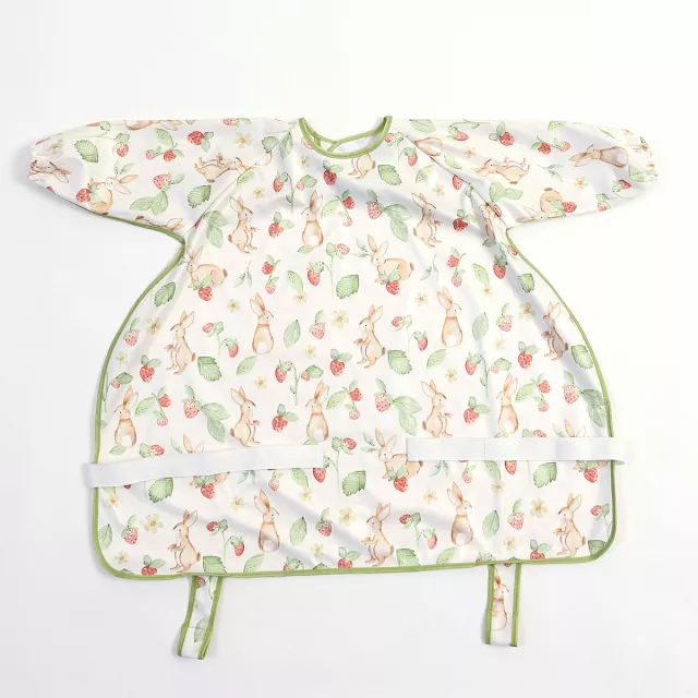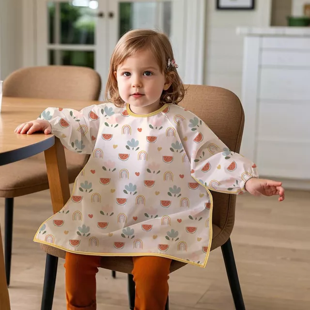 Crafted from lightweight, breathable polyester, this bib is soft on delicate skin and easy to move around in. The fun and playful printed patterns add a touch of charm, making it a favorite for little ones and parents alike. The back snap closure ensures a secure fit, while the full-sleeve design with elastic cuffs keeps arms protected. Best of all, it’s waterproof and washable, so cleanup is as simple as a quick wipe or toss in the wash.