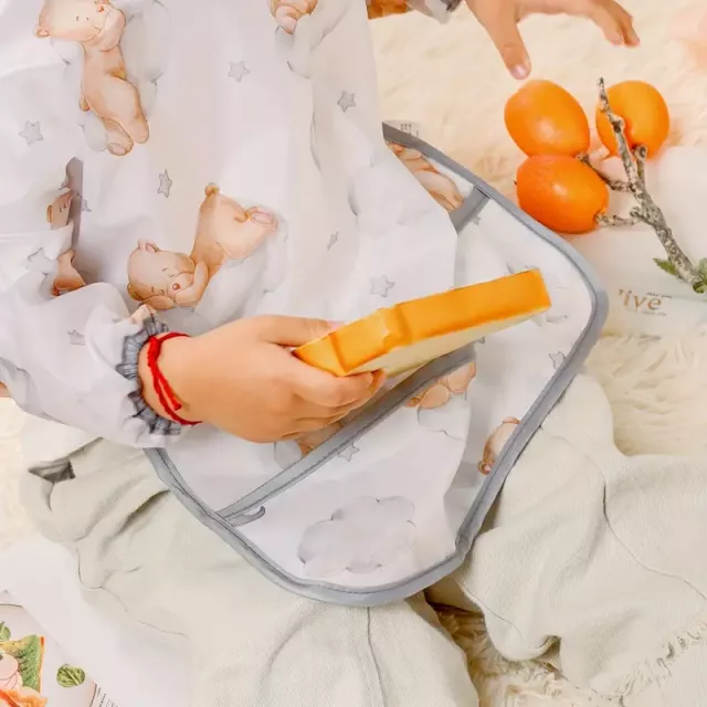 This adorable, long-sleeve bib is more than just a practical feeding solution. It’s also designed with your baby’s comfort in mind. The soft, waterproof polyester material keeps clothes dry while your little one feeds themselves. It’s ideal for babies transitioning from purees to solid foods, allowing them to enjoy mealtime without the worry of stains or discomfort. Plus, its cute design will make every meal time a little more fun!