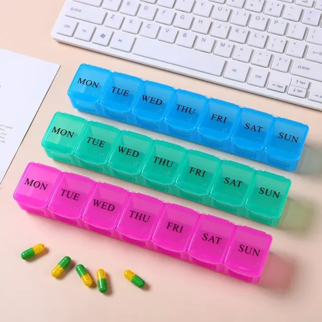 What are the product’s basic features? Each weekly organizer includes seven individual compartments, each clearly labeled and colored for easy identification. The independent lattice design ensures you can open one day’s container without disturbing the others. Lightweight and compact, it slips easily into your purse, backpack, or travel bag. Made from durable, BPA-free plastic, it’s both safe and long-lasting.
