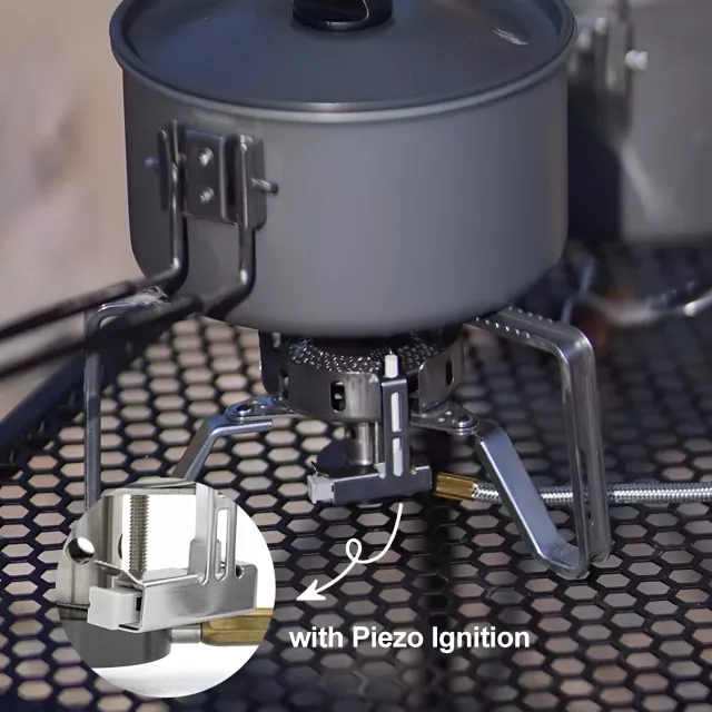 This stove is built from durable stainless steel, giving it excellent resistance to rust and wear. Its split design with a connected hose makes it exceptionally stable on uneven terrain, while the foldable legs and compact size make packing a breeze. With its automatic ignition device, getting a flame started is effortless — no need to fumble with matches or lighters.