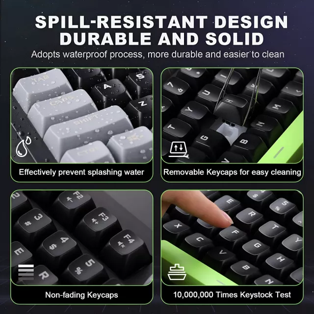 Enjoy smooth keystrokes and a silent touch thanks to innovative membrane technology that simulates mechanical switches while drastically reducing noise—up to 90% quieter than traditional mechanical keyboards. Whether you’re grinding through a game or flying through spreadsheets, this keyboard gives you speed, comfort, and immersive lighting in one sleek package.