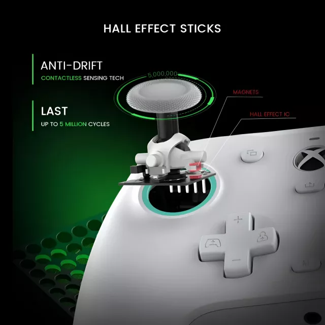 This controller stands out because of its Hall Effect technology—a first for Xbox controllers. Unlike traditional analog sticks that wear out over time, the magnetic sensors in the Hall Effect joysticks offer a lifetime of smooth performance without any stick drift. This ensures a reliable and precise gaming experience, whether you’re in the heat of battle or cruising through your favorite racing game.