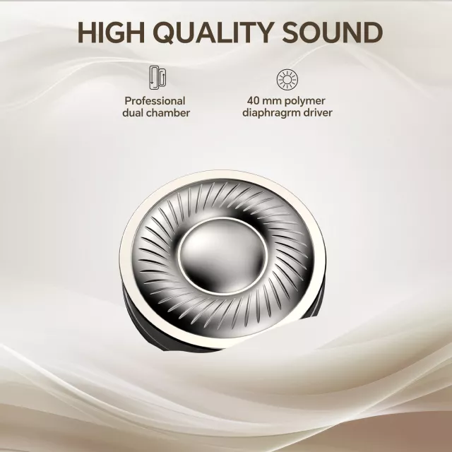 With Hi-Res audio and dual sound chamber technology, you’ll hear music the way it was meant to be heard. The 40mm drivers deliver a full-spectrum experience—deep bass, vibrant mids, and sparkling highs. Separate sound chambers for bass and treble minimize distortion, allowing each note to shine with rich clarity and vibrant detail.