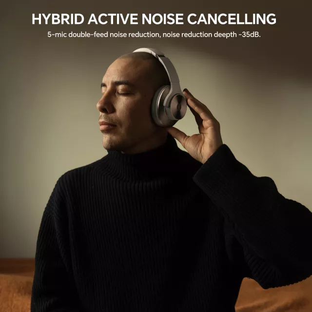 Immerse yourself in sound like never before with these cutting-edge wireless over-ear headphones featuring Hybrid Active Noise Cancellation that blocks out up to 95% of low-frequency background noise. Whether you’re commuting, traveling, working from home, or relaxing in a busy environment, the powerful 35dB noise cancellation ensures your music and calls stay crystal clear and uninterrupted. The dual noise-detecting microphones pick up ambient sounds and cancel them with precision—leaving you with nothing but pure, high-fidelity sound.
