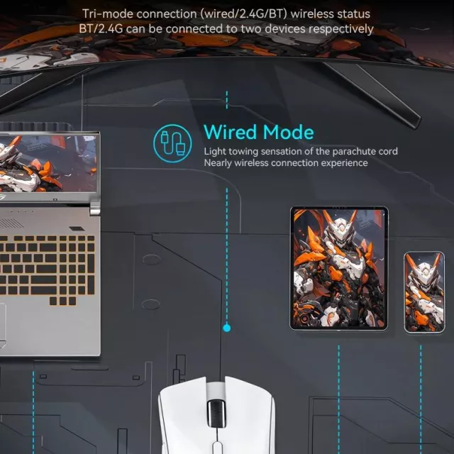 This mouse offers unmatched flexibility with three connection modes: wireless, Bluetooth, and wired. Switch effortlessly between modes to suit your gaming setup or daily needs. Whether you want a lag-free wired connection or the freedom of wireless, this mouse adapts perfectly to your environment. Its rechargeable battery ensures long hours of uninterrupted play, eliminating worries about power outages mid-game.