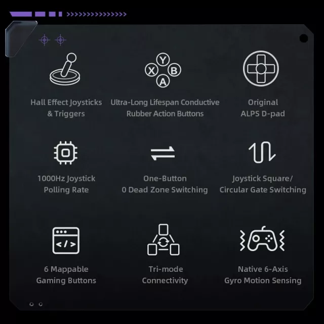 This controller is packed with features that make it stand out from the rest. The advanced Hall Effect joysticks and linear triggers prevent drift and wear, ensuring smooth and consistent control. The ultra-high 1000Hz polling rate means lightning-fast response times, giving you a competitive edge in every game. Ergonomically designed for comfort, it lets you play for hours without hand fatigue. Its tri-mode connectivity through USB, 2.4GHz wireless, and Bluetooth provides stable and flexible connection options for any setup.