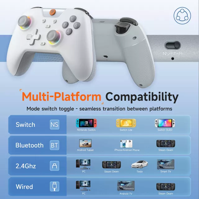Level up your gaming experience with this feature-packed wireless controller that combines high-tech performance with stunning RGB customization. Whether you’re gaming on your PC, Nintendo Switch, or mobile device, this versatile controller ensures you never miss a beat. Designed for serious gamers, it offers precise controls, customizable lighting, and a seamless connection for hours of uninterrupted fun.