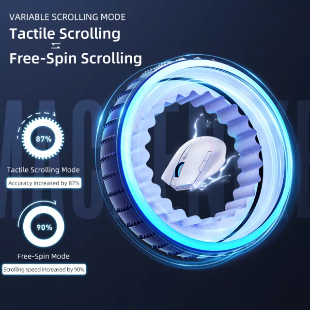 Designed for both casual players and competitive professionals, this mouse features two different scrolling modes—tactile and free-spin. Tactile mode offers satisfying feedback for precision scrolling, while free-spin mode lets you blast through content with ease. Plus, the Kailh GM8.0 microswitches provide a nearly instantaneous trigger response with every click, ensuring that you never miss a beat during those high-pressure moments.