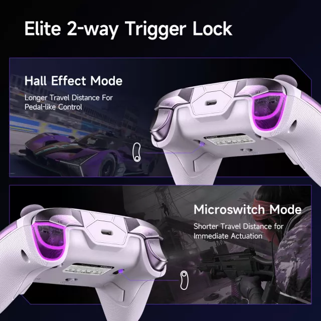 Its smart charging dock and long-lasting battery mean that you never have to worry about interruptions in your gameplay. Simply dock and recharge for the next round of epic gaming. Plus, with the dual-mode trigger design, you can seamlessly switch between linear and tactile responses, offering the ultimate flexibility in how you play your favorite games.