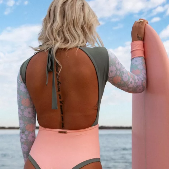 Perfect for beach days, surf sessions, and pool workouts, this swimsuit was made for movement. Its long sleeves provide extra coverage for sun protection and a sleek, aerodynamic look for action-packed water sports. The backless design adds a touch of daring, making this suit just as fashionable as it is functional.