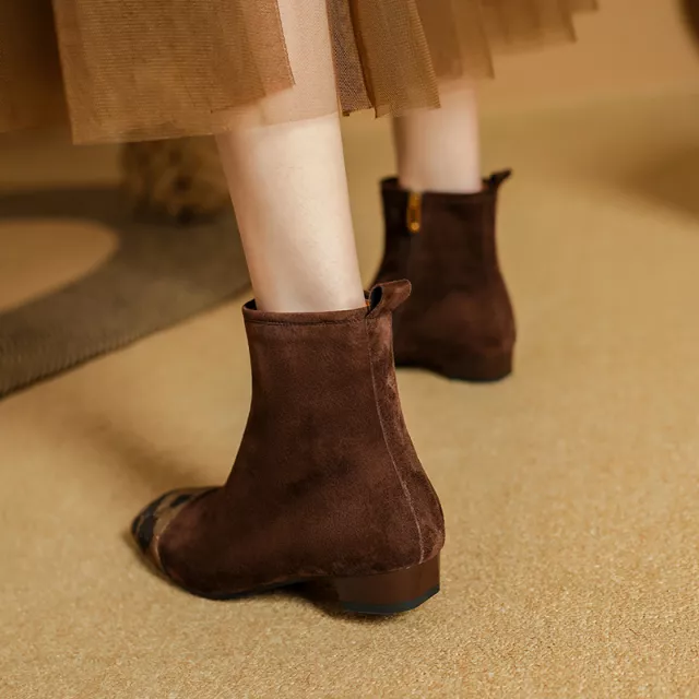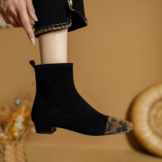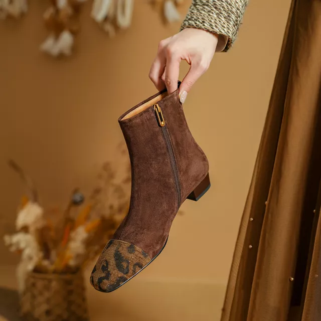 Perfect for autumn and winter, these ankle boots pair effortlessly with jeans, skirts, or dresses. Their low heel offers comfort for all-day wear, making them ideal for work, casual outings, or evening events. The combination of genuine suede and leather lining ensures they not only look stunning but also feel luxurious on your feet. Unlike ordinary boots, the square toe and sleek back zip give them a unique, fashionable edge that stands out in any wardrobe.