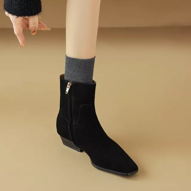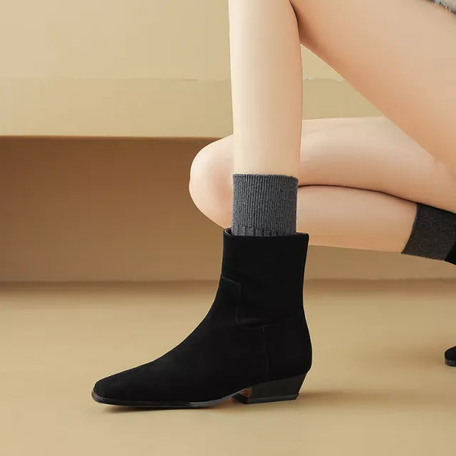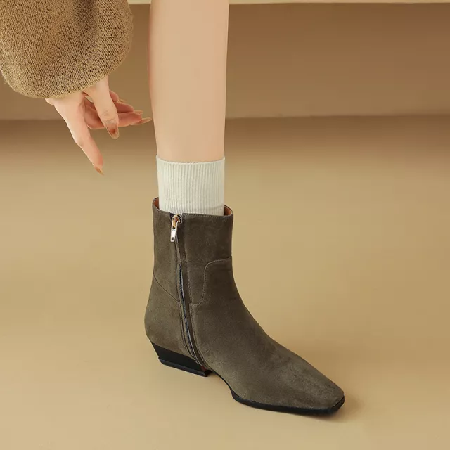These ankle boots are perfect for the spring and autumn seasons, ideal for pairing with jeans, dresses, or skirts. Whether you’re heading to work, meeting friends, or enjoying a weekend outing, these boots deliver style and comfort in every step. The combination of suede and leather not only looks luxurious but also provides lasting wear. The low heel and square toe design make them a practical yet fashionable choice for everyday use.
