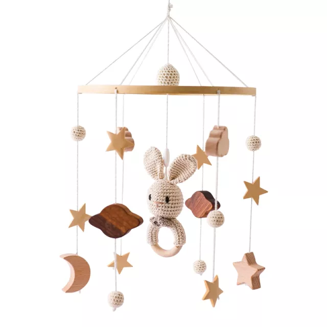 Give your baby a cozy, calming crib space they’ll love. Add this delightful Wooden Crib Mobile with Rabbit Rattles to your cart today and let the gentle melodies and natural textures inspire sweet dreams and happy moments.