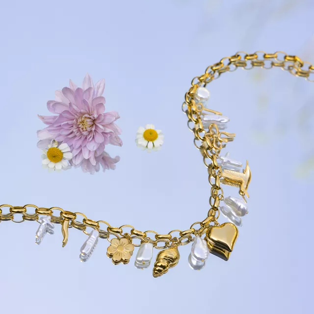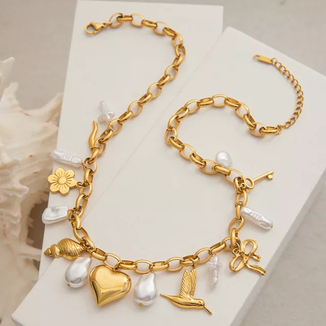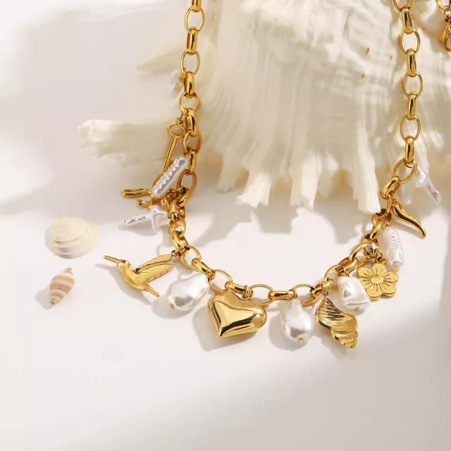Make a bold statement with this Y2K-inspired multi-pendant necklace that effortlessly combines charm, edge, and romance. Designed to turn heads, this gorgeous piece features a layered arrangement of delicate pendants—including hearts and pearls—that dance with your every move. Whether you’re headed to a dreamy vacation, a night out with friends, or a special party, this necklace adds that extra sparkle your outfit craves.